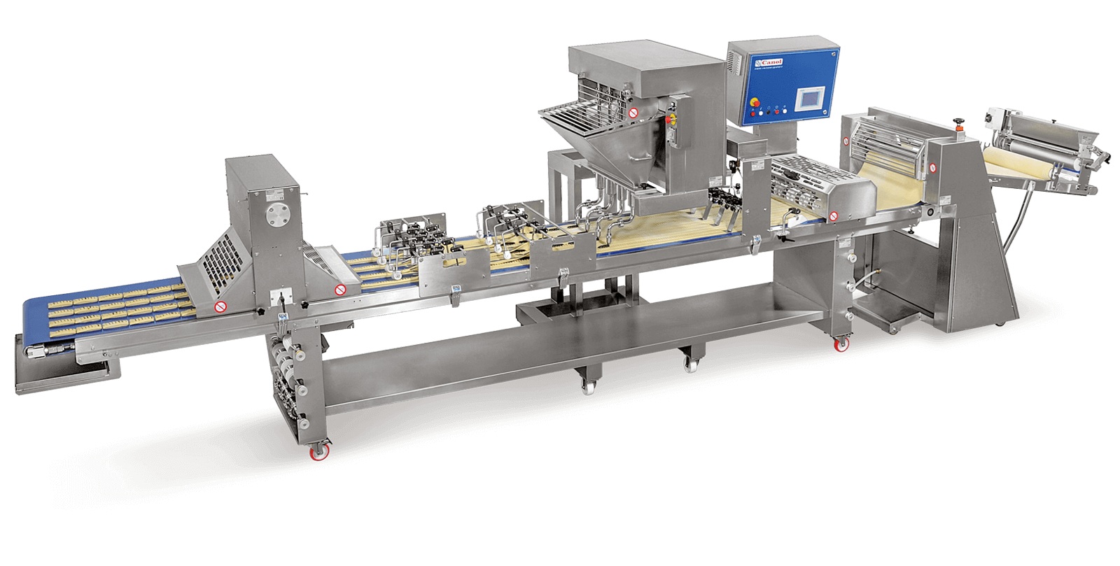 The Canolino make-up table is designed for the production of a wide range of bakery and pastry products, including puff pastry items, yeast-leavened products, and other pastry specialties.